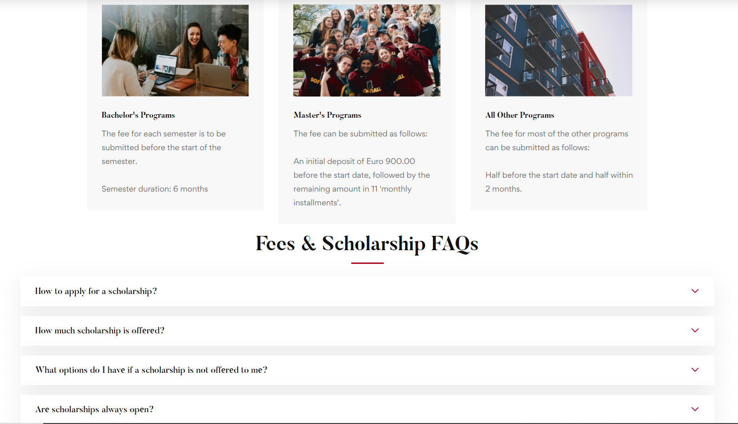 Scholarships provide tuition waivers up to 25% for eligible students.